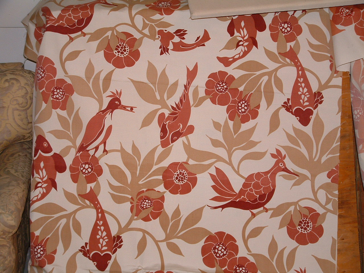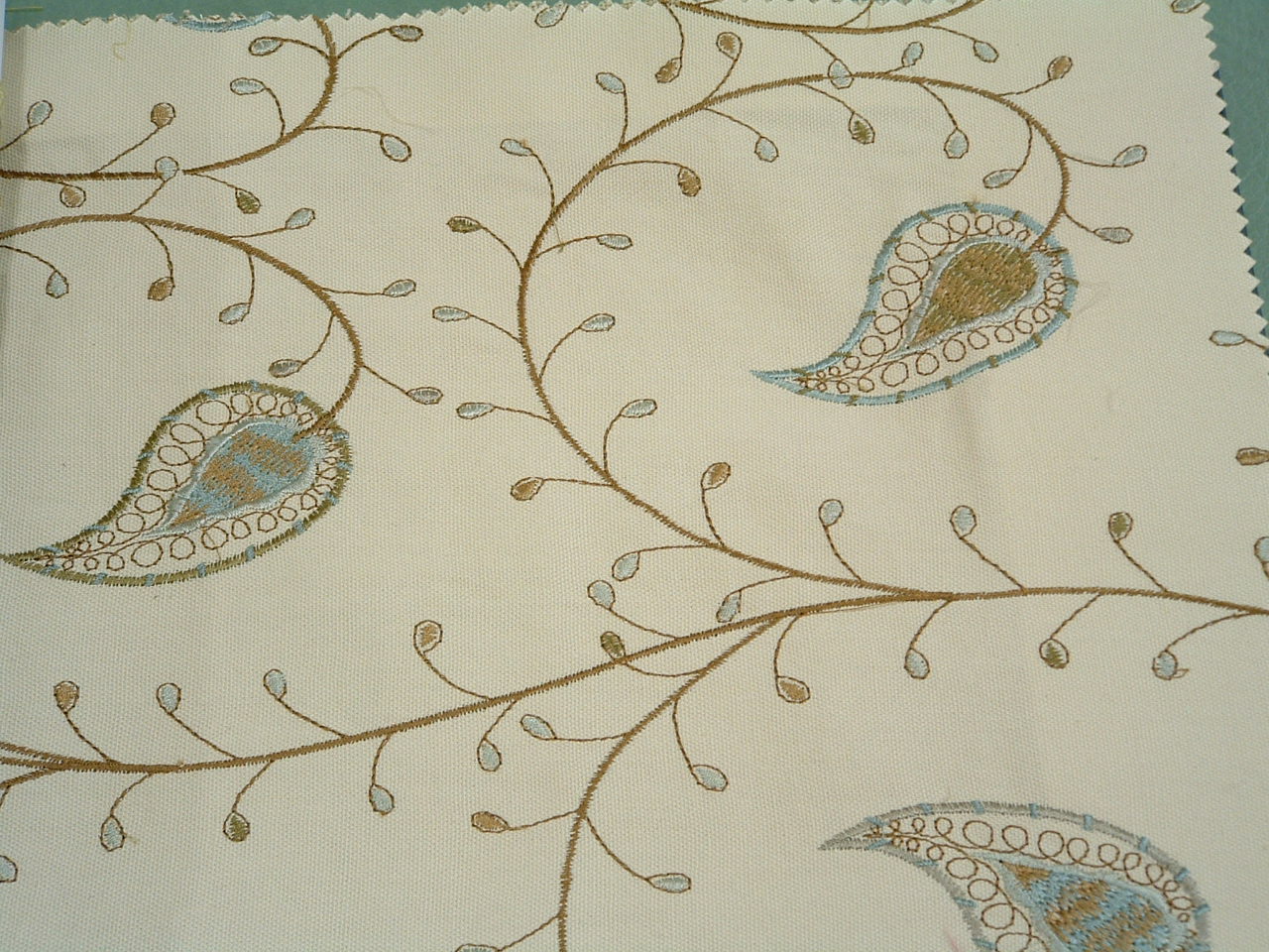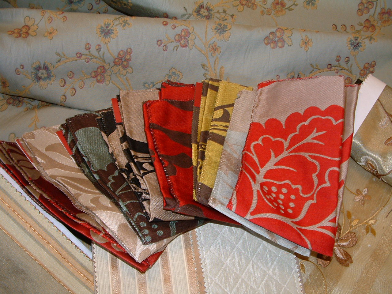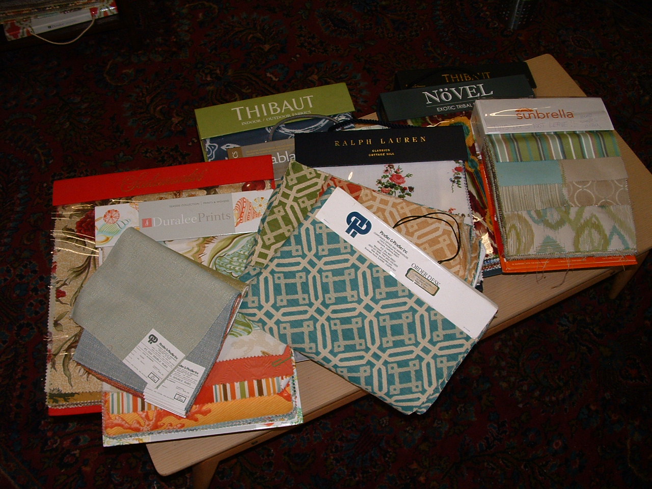 In our showroom we have a large selection of fabric. We have over 28 years of fabric sales experience and now represent more than 20 nationally known fabric companies such as; Thibaut, Green House, Norbar, Maxwell, Kast, Michaels Fabrics, Mitchell, Ralph Laurent, Pindler & Pindler, Rogers & Goffigan, China Seas, etc. They include linens, cottons, silks, olofins, vinyl, leathers, Sunbrella and several blends for in home applications and outdoor uses.